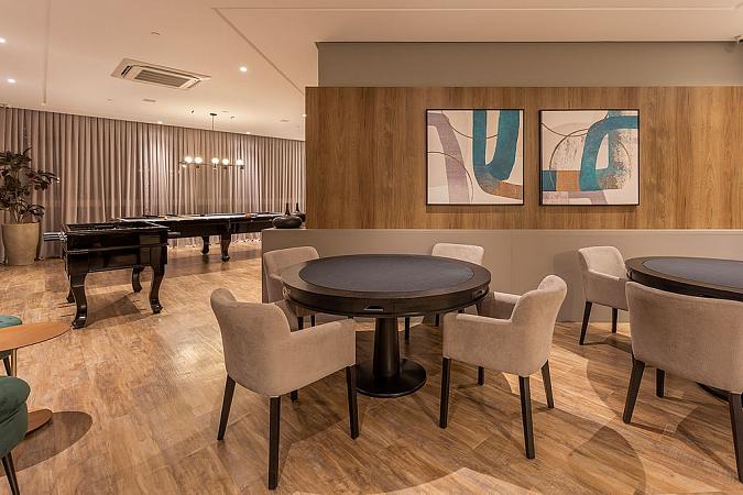 - Todos os ambientes das áreas comuns são decorados, mobiliados, equipados e climatizados.